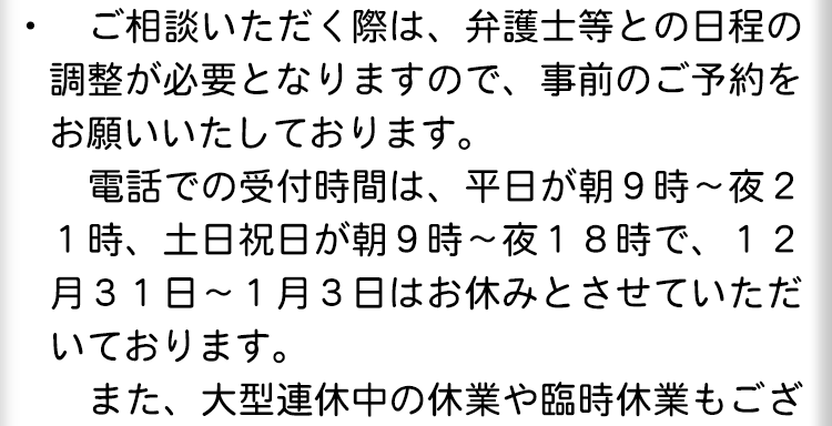 なお、いずれのご相談の場合も、最初にご相談のお申込みを承ります。