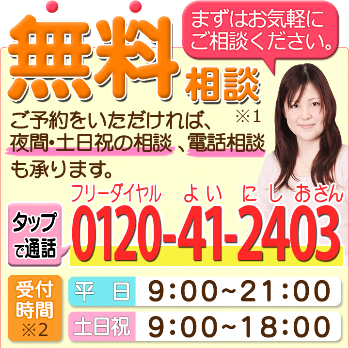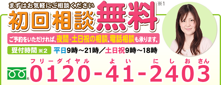 初めての方のご連絡先として、フリーダイヤル・メールフォームをご用意しておりますので、まずはこちらへお問い合わせください。
